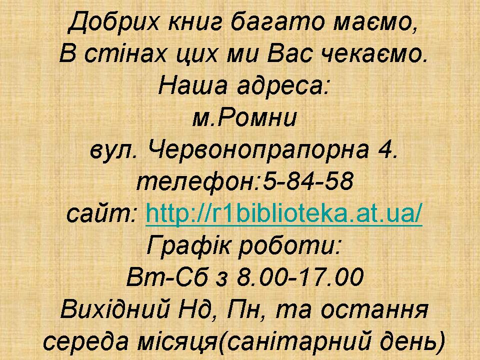 Онлайн всього: 1 Гостей: 1 Користувачів: 0 |